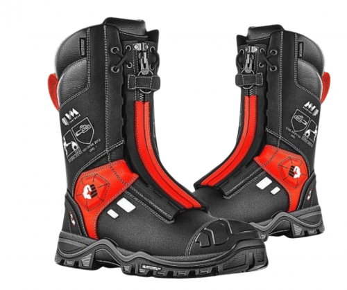 Buty specjalne Black Fighter to nowość na polskim rynku strażackim. Wykonane zostały z hydrofobowej bydlęcej skóry licowej Crazy Horse o grubości od 2,2 do 2,4 mm. Wyposażone w oddychającą, termoizolacyjną i paroprzepuszczalną membranę Free-tex. Antyelektrostatyczna i antypoślizgowa podeszwa wykonana z specjalnego rodzaju gumy produkowanej przez firmę MICHELIN, jest odporna na temperaturę do 300°C, HRO, SRC, CI, oleje, płomień zgodnie z normą EN 15090:2012. Buty posiadają podwójny system sznurowania po bokach oraz zamek błyskawiczny renomowanej firmy YKK z dużym okrągłym uchwytem dla łatwego zakładania/zdejmowania.