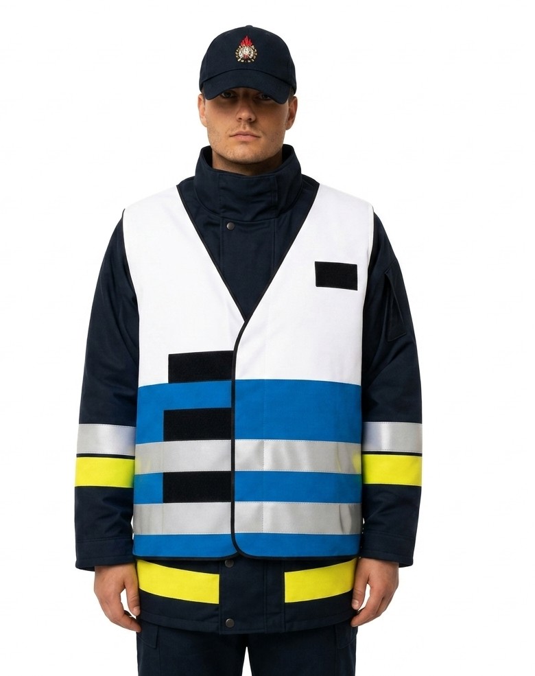Kamizelki funkcyjne wykonane zgodnie z zaleceniami Komendy Głównej Państwowej Straży Pożarnej w sprawie wymagań dla kamizelek funkcyjnych służących do oznakowania osób uprawnionych do kierowania działaniem ratowniczym na różnych poziomach kierowania, członków sztabu oraz osób związanych z organizacją i przebiegiem ćwiczeń.