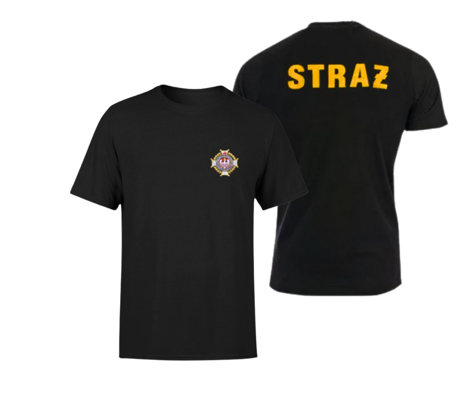 Koszulka bez możliwości personalizacji.Podkoszulka jest uzupełnieniem do ubrania koszarowego strażaka. Na lewej przedniej części na wysokości piersi znajduje się logo OSP. Na plecach jest napis STRAŻ. Logo jak i napis wykonane są metoda haftu komputerowego .