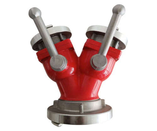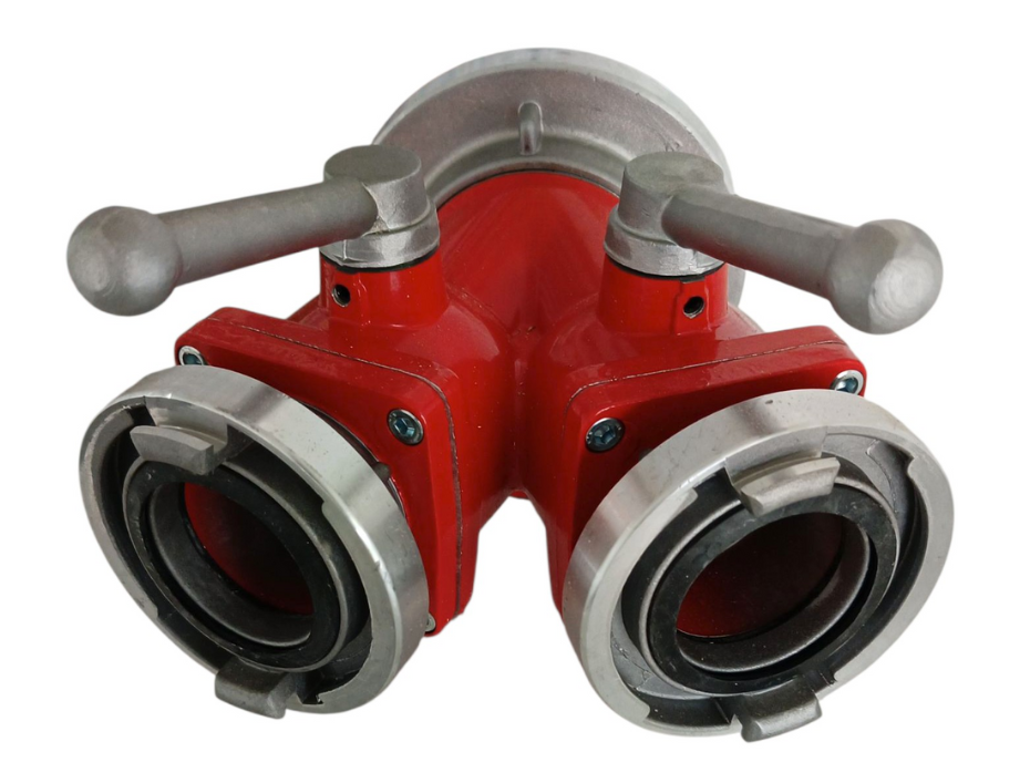 Rozdzielacze kulowe służą do rozdzielenia strumienia wody z głównej linii wężowej na dwie linie. Wyloty rozdzielacza kulowego K-110/2x75 wyposażone są w niezależne zawory kulowe służące do zamknięcia przepływu.